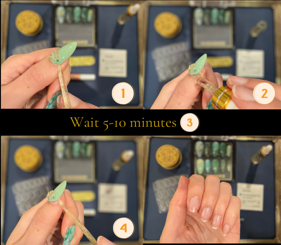 Never pull or pop off press-ons as this can damage both your natural nails and the press-ons.